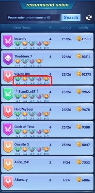 From your current Union tab, click Union Hall, Manage Union, search union.  It’ll show 10 unions and their badge level. Click the union name and it’ll show the requirements to join (minimum level, minimum power, language, etc) and a list of union members including the union elders.